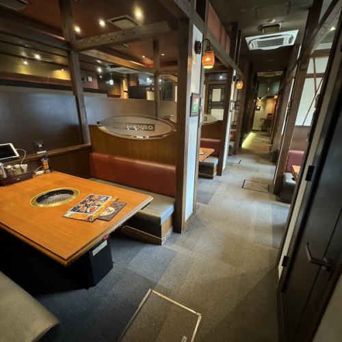 아늑한 가게 안에서 야키니쿠를 만끽! 차분한 분위기의 점내에는 완전 개인실과 반 개인실이 있습니다.어느 쪽도 파고타츠식이 되고 있으므로, 다리를 늘려 천천히 보내실 수 있습니다.또, 4~15분, 4명~32분, 4명~50분 등, 이용 인원수에 따라 좌석의 레이아웃 변경도 가능 ◎ 부담없이 상담해 주세요♪